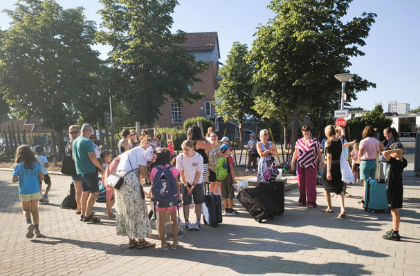 Bepackt mit Rucksack, Koffer und Kuscheltier machten sich die Klassen 2c und 2e im Juli auf den Weg ins Schullandheim.Schon zweimal hatten die Kinder kurz vor den Osterferien in der Schule übernachtet und waren somit sozusagen Übernachtungsprofis.