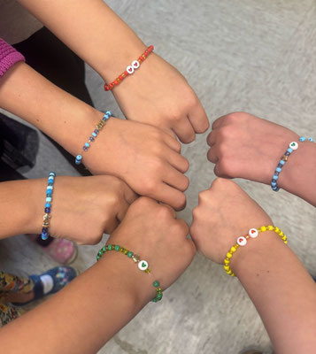 Zum Zeichen dafür haben alle zusammen Freundschaftsarmbänder gefädelt.