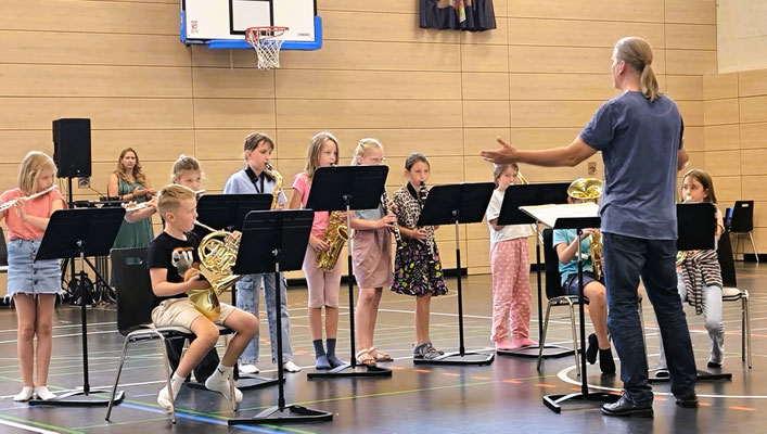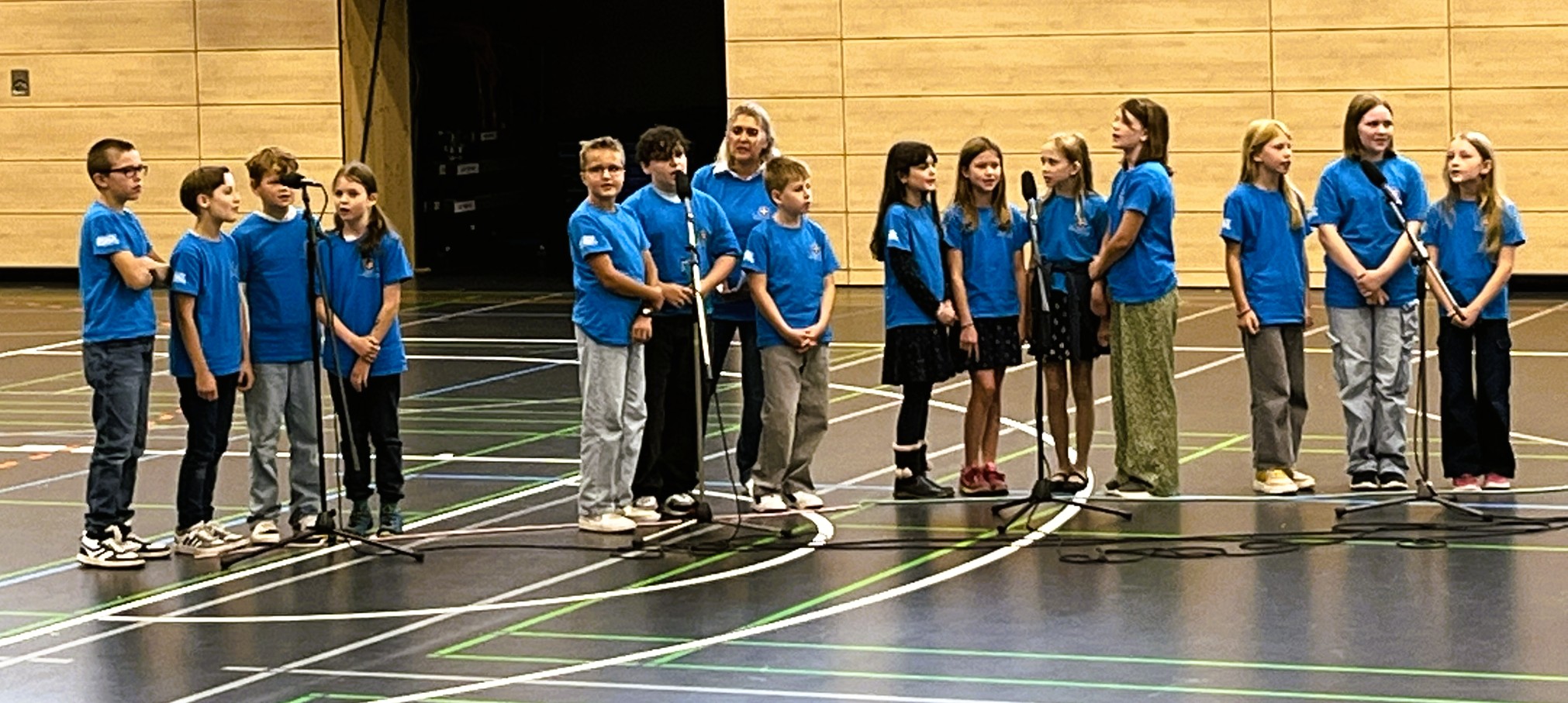 Auch die Bläserklasse 3 unter der Leitung von Rainer Buschke stellte ihr Können unter Beweis, und nicht zuletzt wurde das Publikum beim ein oder anderen Kanon zum Mitsingen animiert.