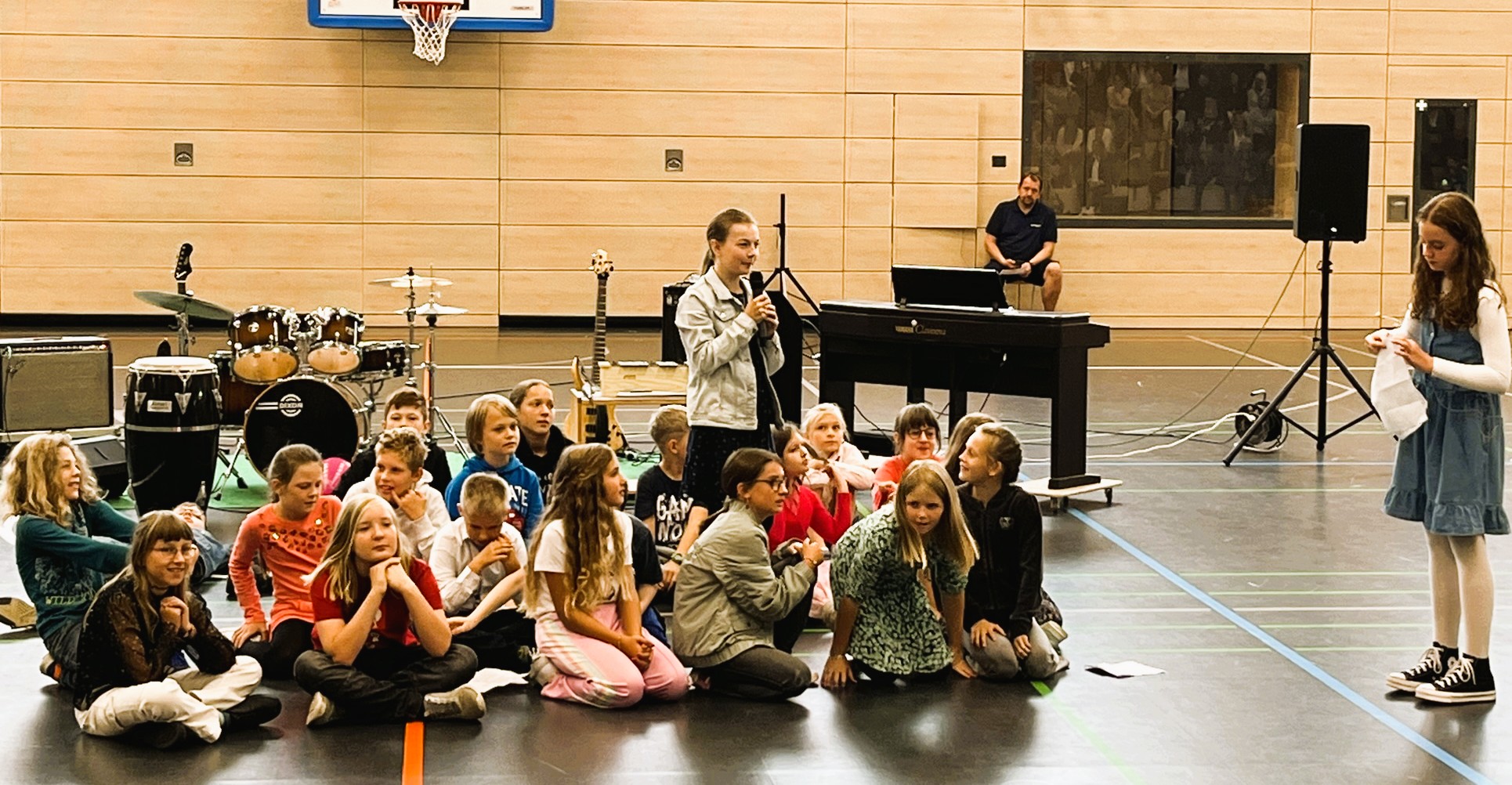 Als sich die Zweit- und Drittklässler an diesem Montagvormittag in der Aula der Grundschule treffen, wissen sie selbst noch nicht so genau, weshalb sie da sind und was als nächstes passieren wird. Klar ist nur: „Wir wollen etwas Großes starten“, wie Lehrerin Anja Reinhardt zu Beginn sagt. Und weil das in Gemeinschaft am besten klappt, singen alle zusammen als Auftakt das Lied „Hand in Hand“ – das perfekte Motto.