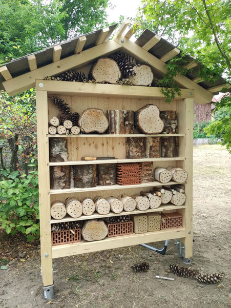 hat. Auch rund um das Insektenhotel soll eine Blühfläche gepflanzt werden, damit die Insekten direkt in „Wohnnähe“ Nahrung finden.